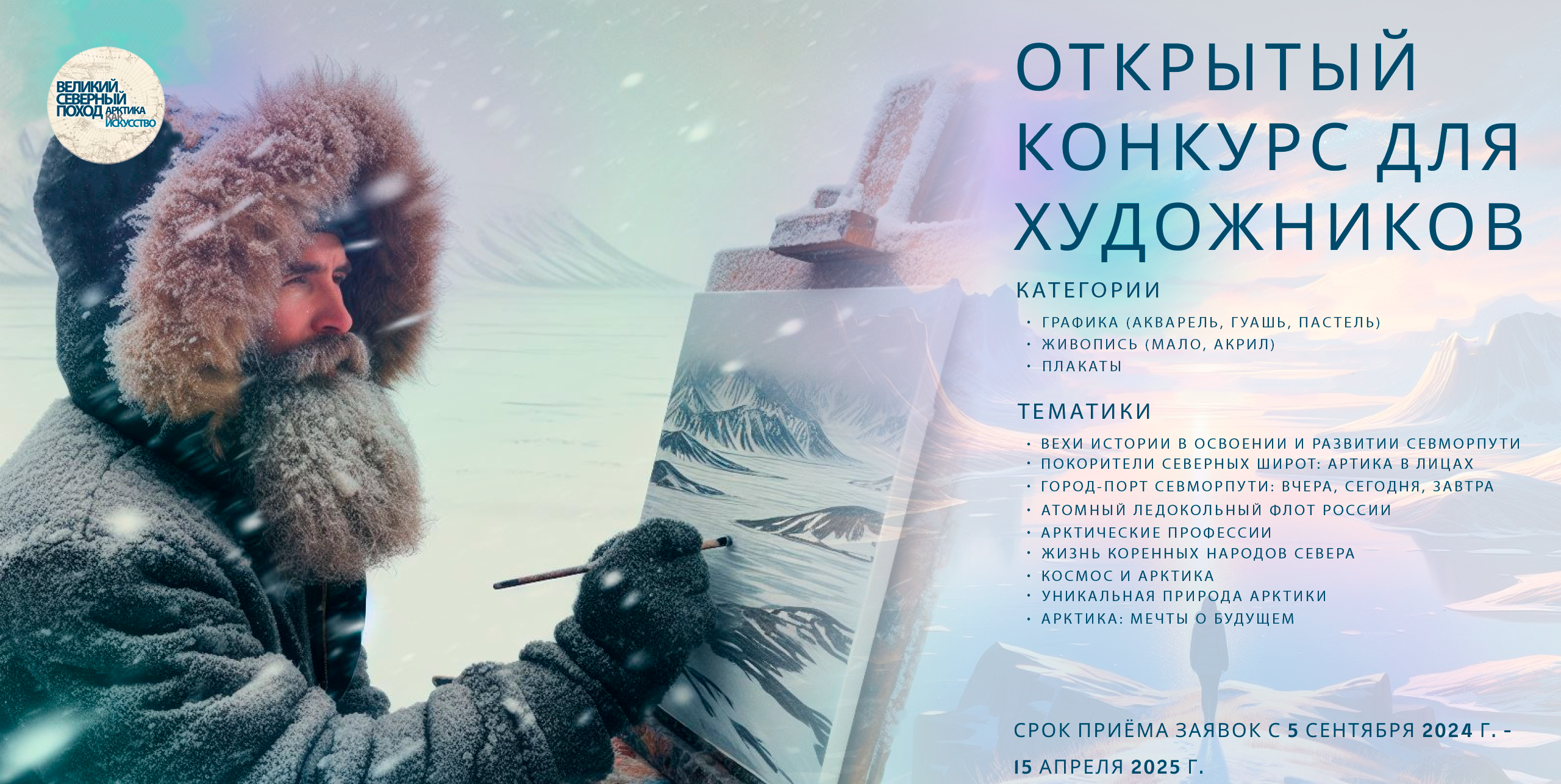 1 сентября 2024 года будет объявлен открытый творческий конкурс художественных работ по тематикам Проекта «Великий Северный поход. Арктика как искусство».